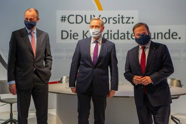 Nonostante le difficoltà la politica va avanti. A circa un mese dal Parteitag digitale che eleggerà il nuovo leader della CDU, i tre candidati si sono incontrati per il primo dibattito dal vivo, nel quartier generale della Konrad-Adenauer-Haus di Berlino. Avevano già avuto un confronto online a fine ottobre, ospiti virtuali della Junge Union - l’organizzazione giovanile del partito - che aveva ufficializzato il suo sostegno a Friedrich Merz. L’anti-Merkel è molto popolare fra i giovani conservatori, quindi il risultato non ha sorpreso nessuno. A colpire però è stata l’affluenza, molto bassa: solo 15.000 voti su un totale di 75.000.