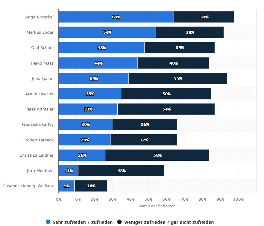 Secondo un altro sondaggio del Forschungsgruppe Wahlen ormai solo il 31% degli intervistati ritiene giuste le restrizioni, un drastico calo rispetto al 55% di febbraio. E anche la popolarità di Angela Merkel è inevitabilmente in calo: la Kanzlerin continua a essere in testa nell’apprezzamento dei tedeschi, ma con un punteggio decisamente minore rispetto alla fine dello scorso anno.
